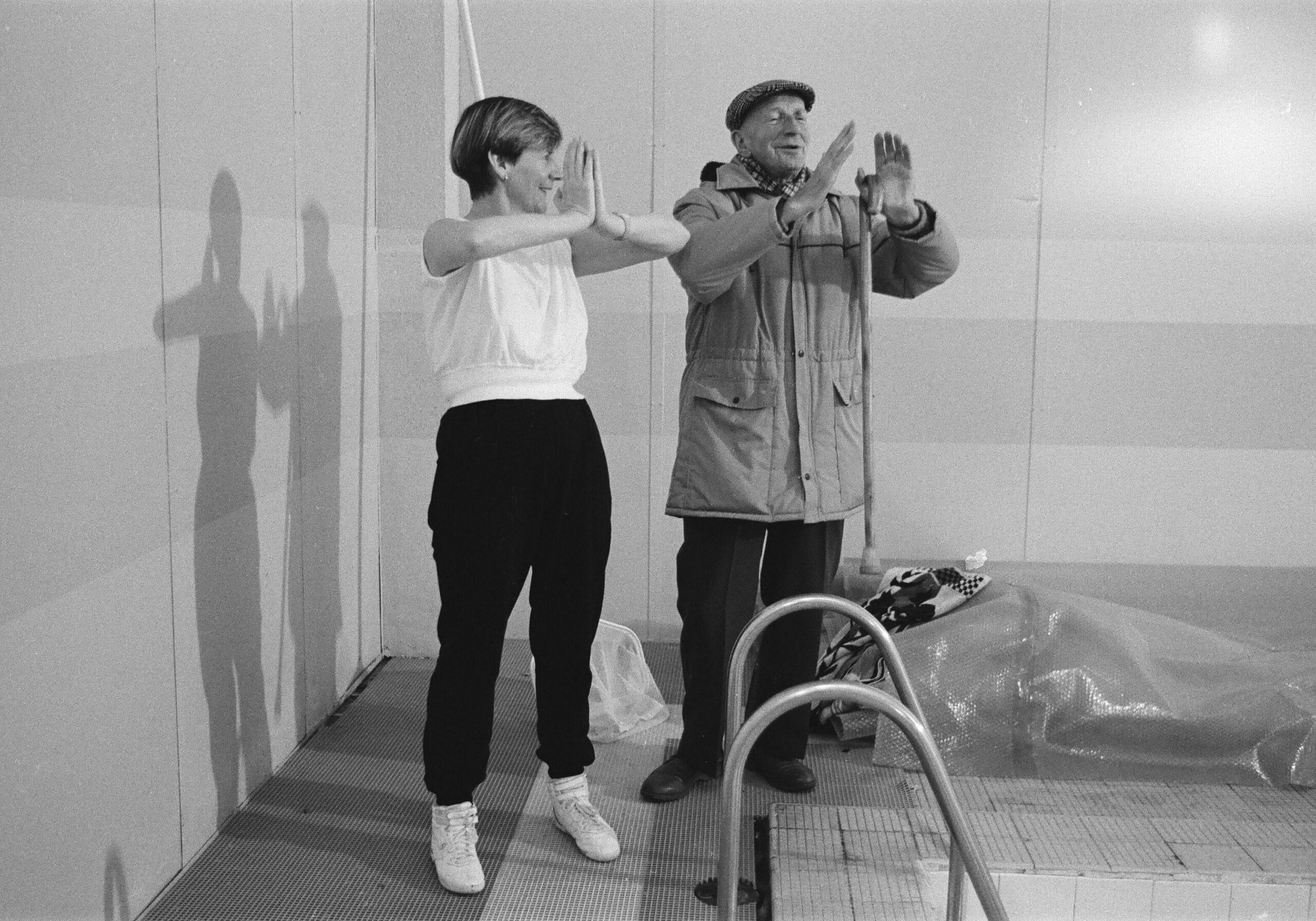 This series was photographed in Newport, Wales. The work looks at everyday life in the city during a period of change and uncertainty. Children played in abandoned buildings left behind by redevelopment. In church halls, ballet lessons and drawing classes carried on, giving structure and creativity to young people’s lives. At the same time, older residents kept up their routines, swimming together and holding on to traditions of community. The photographs record ordinary moments in Newport—play, learning, and leisure—set against the backdrop of a city in transition.